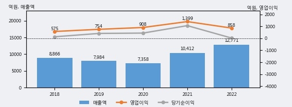 최근 실적을 살펴보면 2022년 매출액이 최근 5년 중 가장 높은 실적을 기록했음을 알 수 있다. 이전 최고 실적이었던 2021년 보다도 22.7%(2359억 5천만원) 늘어난 것으로 나타났다.