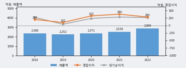 최근 3년간의 실적을 살펴보면 안정적 성장세를 보이고 있다. 최근 3년간 매출로 볼 때 매년 증가하고 있고 그 증가폭도 확대되고 있다.