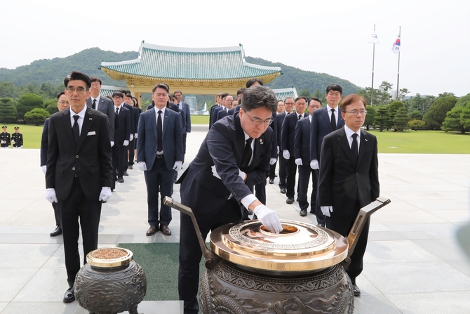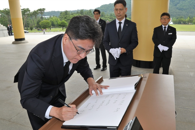 헌화·분향을 마친 윤 관세청장은 현충탑 참배 후 방명록에 '국가와 국민을 위한 헌신과 희생 가슴에 새기면서 업무에 임하겠습니다'라고 적었다.