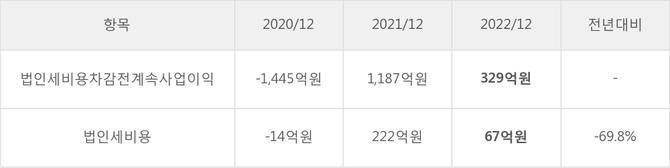 이수화학의 지난 3년 동안 법인세 납부액 추이를 보면 2021년에는 증가했으나, 작년에는 67억원으로 감소했다.