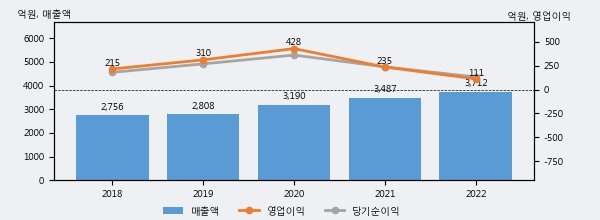 최근 3년간의 실적을 살펴보면 안정적 성장세를 보이고 있다. 최근 3년간 매출로 볼 때 매년 꾸준히 증가하고 있다. 다만 최근에 그 증가폭이 다소 감소하고 있다.
