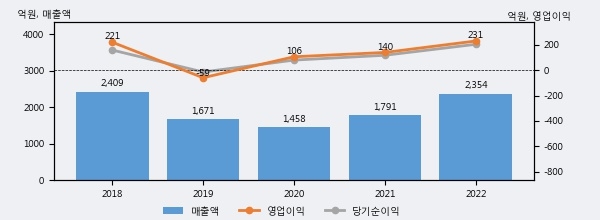 와이엠씨의 2022년 매출액은 2354억으로 전년대비 31.4% 상승했고, 영업이익 또한 231억으로 전년대비 64.4% 상승했다. 이 회사의 매출액 증감률과 영업이익 증감률은 각각 코스닥 상위 24%, 상위 25%에 해당된다.