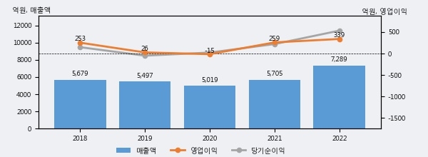 최근 실적을 살펴보면 2022년 매출액이 최근 5년 중 가장 높은 실적을 기록했음을 알 수 있다. 이전 최고 실적이었던 2021년 보다도 27.8%(1583억 9천만원) 늘어난 것으로 나타났다.