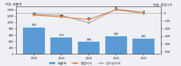 서산의 2022년 매출액은 전년대비 -12.4% 줄어든 492억원이고, 영업이익은 적자전환해서 -5억원을 기록했다. 이 회사의 매출액 증감률과 영업이익 증감률은 각각 코스닥 하위 16%, 하위 14%에 해당된다.