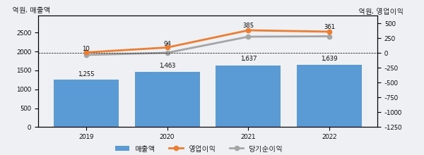 최근 3년간의 실적을 살펴보면 안정적 성장세를 보이고 있다. 최근 3년간 매출로 볼 때 매년 증가하고 있다. 다만 최근에 그 증가폭이 다소 감소하고 있다.