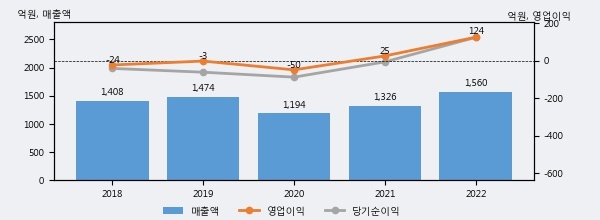 최근 실적을 살펴보면 2022년 매출액이 최근 5년 중 가장 높은 실적을 기록했음을 알 수 있다. 이전 최고 실적이었던 2019년 보다도 5.9%(87억원) 늘어난 것으로 나타났다.