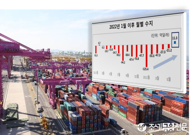 산업부에 따르면 월간 무역수지 흑자가 난 것은 지난해 2월 이후 16개월 만이다. 작년 3월부터 올 5월까지 무역수지는 15개월 연속 적자였는데, 이는 1995년 1월∼1997년 5월 29개월 연속 무역적자 이후 27년 만에 가장 긴 연속 적자였다.