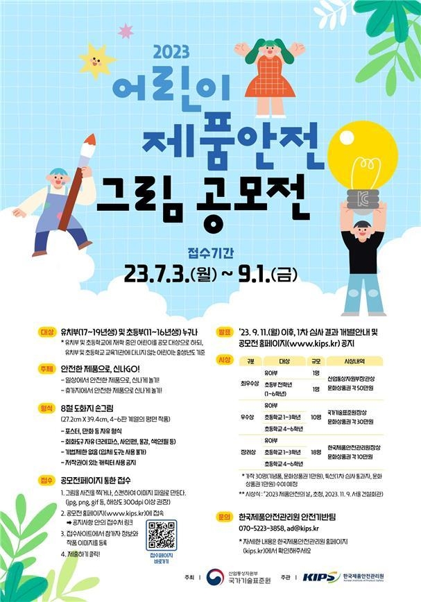 (조세금융신문=구재회 기자) 산업통상자원부 국가기술표준원은 생활 속 제품 안전의 중요성을 알리기 위해 이달 3일부터 9월 1일까지 '어린이 제품 안전 그림 공모전'을 연다.