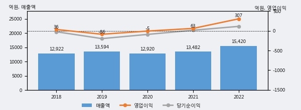 최근 실적을 살펴보면 2022년 매출액이 최근 5년 중 가장 높은 실적을 기록했음을 알 수 있다. 이전 최고 실적이었던 2019년 보다도 13.4%(1826억 1천만원) 늘어난 것으로 나타났다.