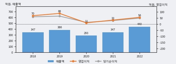 최근 실적을 살펴보면 2022년 매출액이 최근 5년 중 가장 높은 실적을 기록했음을 알 수 있다. 이전 최고 실적이었던 2019년 보다도 13.9%(53억 8천만원) 늘어난 것으로 나타났다.