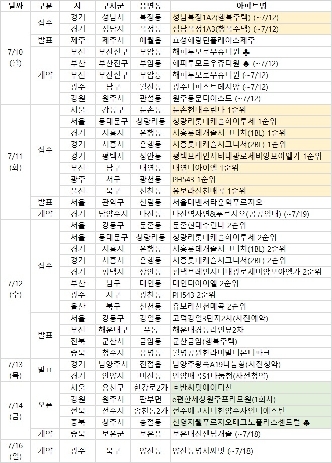 7일 부동산R114에 따르면 2023년 7월 둘째 주에는 전국 9개 단지 총 9697가구(일반분양 6873가구)가 분양을 시작한다.