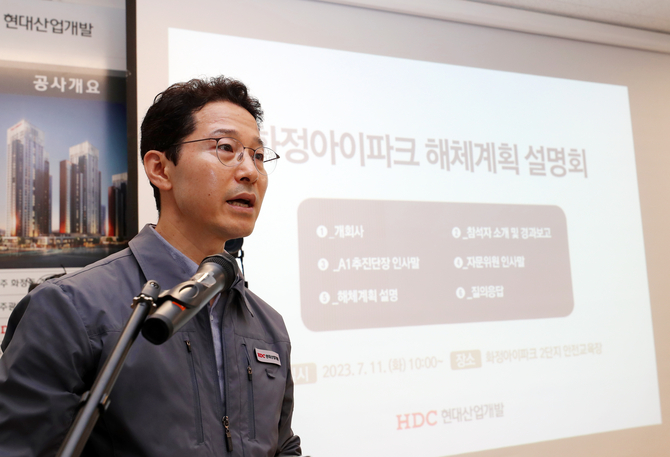 HDC현대산업개발(HDC현산)은 11일 광주광역시 서구 화정동 공사 현장에서 해체 관련 설명회를 열고 해체 일정과 공법, 안전·환경 관리 계획, 현장 관리 목표 등을 공개했다.