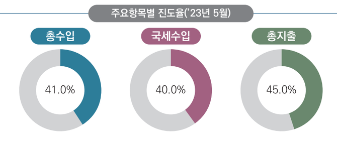 기획재정부가 최근 공개한 2023년 7월 월간 재정동향에 따르면 정부는 1~5월까지 올해 1년치 세금 목표의 40.0%를 거뒀다고 밝혔다(세수진도율 40.0%).