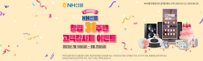 (조세금융신문=김종태 기자) NH선물은 창립 31주년을 맞아 고객들에게 감사의 마음을 전하기 위해 '고객감사제' 이벤트를 진행한다고 밝혔다.