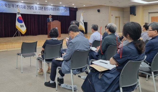(조세금융신문=김영기 기자) 종로세무서(서장 임상진)는 부가세 확정신고 기간을 맞아 지난 13일 대강당에서 종로지역세무사회(회장 김정엽)와 2023년 귀속 부가가치세 확정신고와 관련해 간담회를 갖고 신고방향을 비롯한 성실신고 안내를 당부했다.