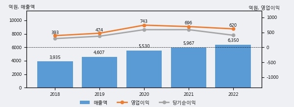 최근 3년간의 실적을 살펴보면 안정적 성장세를 보이고 있다. 최근 3년간 매출로 볼 때 매년 꾸준히 증가하고 있다. 다만 최근에 그 증가폭이 다소 감소하고 있다.