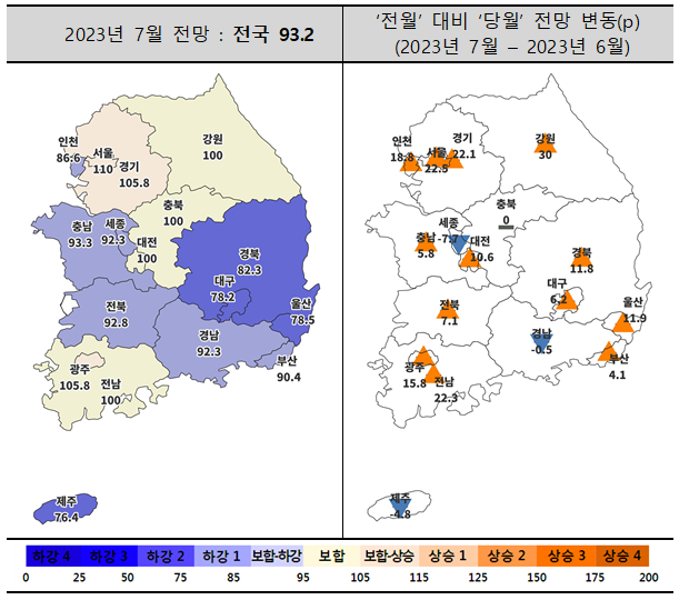 주산연 관계자는 “전국적으로 전년 동월대비 모두 상승세를 보였는데 2022년 7월 당시 금리인상과 자금조달지수의 대폭 하락으로 인해 사업전망이 좋지 않았던 주택사업이 점차 회복하고 있다고 볼 수 있다”고 설명했다.