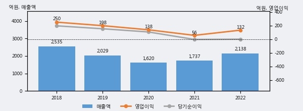 동아엘텍의 2022년 매출액은 전년대비 23.1% 늘어난 2138억원이고, 영업이익 또한 전년대비 135.7% 늘어난 132억원을 기록했다. 이 회사의 매출액 증감률과 영업이익 증감률은 각각 코스닥 상위 33%, 상위 14%에 해당된다.