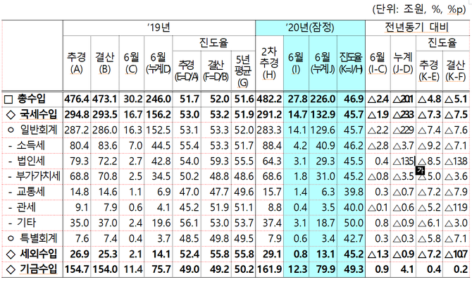 이 탓에 2020년 상반기 세금 달성률은 45.7%로 떨어졌다.