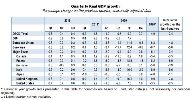 OECD 권역의 경우 2분기 성장률이 전분기 대비 –10.5% 푹 꺼졌다.