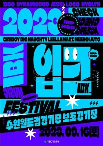 기업은행은 13일 MZ세대를 위한 음악 축제 '입크 페스티벌(IBK FESTIVAL)'을 다음 달 16일 수원 월드컵경기장 보조경기장에서 개최한다고 밝혔다.