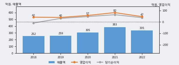 인산가의 2022년 매출액은 전년대비 -12.5% 줄어든 335억원이고, 영업이익 역시 전년대비 -42.9% 줄어든 47억원을 기록했다. 이 회사의 매출액 증감률과 영업이익 증감률은 각각 코스닥 하위 16%, 하위 27%에 해당된다.