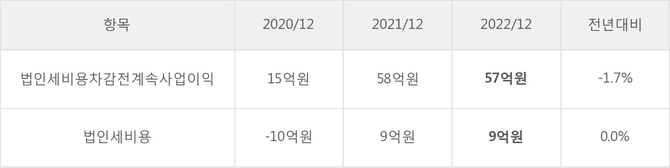 시큐브의 지난 3년 동안 법인세 납부액 추이를 보면 각각 -10억원, 9억원, 9억원을 기록하고 있다.