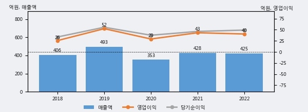 티비씨는 2022년 매출액 425억원과 영업이익 40억원을 기록했다. 전년대비 매출은 -0.8%, 영업이익은 -6.5% 각각 하락했다. 이 회사의 매출액 증감률과 영업이익 증감률은 각각 코스닥 하위 27%, 하위 44%에 해당된다.