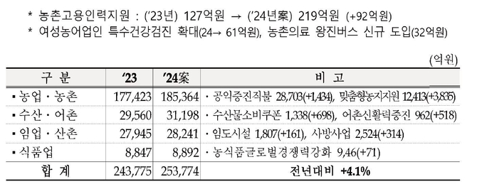 여성농어업인 특수건강검진도 61억이 확대됐고, 농촌의료 왕진버스 신규 도입을 32억원으로 확대했다.