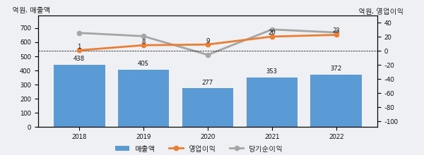 딜리의 2022년 매출액은 372억으로 전년대비 5.4% 상승했고, 영업이익 또한 23억으로 전년대비 11.8% 상승했다. 이 회사의 매출액 증감률과 영업이익 증감률은 각각 코스닥 하위 37%, 상위 45%에 해당된다.