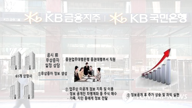 앞서 금융당국은 국민은행 증권대행부서 소속 직원들이 2021년 1월부터 올해 4월까지 61개 상장사 무상증자 업무를 대행하는 과정에서 미공개 정보를 사전에 취득해 본인·가족 명의로 주식을 매수한 사실을 적발해 증권선물위원장 패스트트랙(신속처리안건)으로 검찰에 통보한 바 있다.