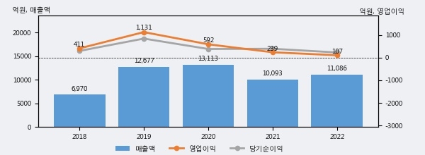 엠씨넥스는 2022년 매출액 1조 1086억원과 영업이익 107억원을 기록했다. 전년대비 매출은 9.8% 상승했고, 영업이익은 -55.2% 하락했다. 이 회사의 매출액 증감률과 영업이익 증감률은 각각 코스피 하위 38%, 하위 18%에 해당된다.