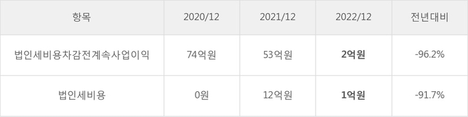 엔텔스의 지난 3년 동안 법인세 납부액 추이를 보면 2021년에는 증가했으나, 작년에는 1억원으로 감소했다.