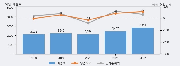 최근 실적을 살펴보면 2022년 매출액이 최근 5년 중 가장 높은 실적을 기록했음을 알 수 있다. 이전 최고 실적이었던 2021년 보다도 15.2%(373억 8천만원) 늘어난 것으로 나타났다.