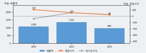 프롬바이오의 2022년 매출액은 980억으로 전년대비 -27.4% 하락했고, 영업이익 역시 48억으로 전년대비 -58.1% 하락했다. 이 회사의 매출액 증감률과 영업이익 증감률은 각각 코스닥 하위 1%, 하위 1%에 해당된다.