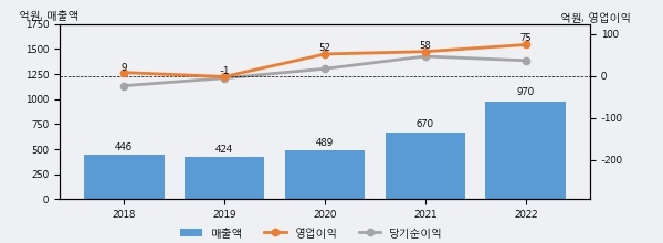 폴라리스우노의 2022년 매출액은 970억으로 전년대비 44.9% 상승했고, 영업이익 또한 75억으로 전년대비 28.1% 상승했다. 이 회사의 매출액 증감률과 영업이익 증감률은 각각 코스닥 상위 15%, 상위 37%에 해당된다.