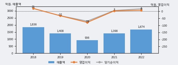 SH에너지화학의 2022년 매출액은 1674억으로 전년대비 19.7% 상승했고, 영업이익 또한 8억으로 전년대비 138.2% 상승했다. 이 회사의 매출액 증감률과 영업이익 증감률은 각각 코스피 상위 36%, 상위 10%에 해당된다.