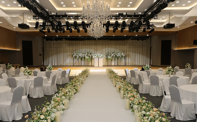 15일 하나금융그룹은 전날 그룹 사옥 내 공간을 예식장으로 리모델링한 '하나 그랜드 홀'에서 첫 결혼식이 열렸다고 밝혔다.