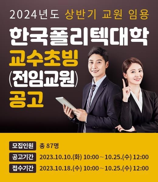 (조세금융신문=최주현 기자) 한국폴리텍대학은 내년 2월 임용될 16개 계열 교수 87명을 초빙한다고 15일 밝혔다.