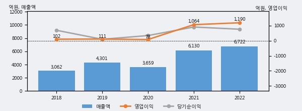 최근 실적을 살펴보면 2022년 매출액이 최근 5년 중 가장 높은 실적을 기록했음을 알 수 있다. 이전 최고 실적이었던 2021년 보다도 9.7%(592억 2천만원) 늘어난 것으로 나타났다.