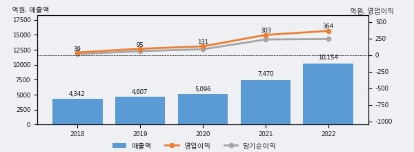 최근 3년간의 실적을 살펴보면 안정적 성장세를 보이고 있다. 최근 3년간 매출로 볼 때 매년 꾸준히 증가하고 있다. 다만 최근에 그 증가폭이 다소 감소하고 있다.