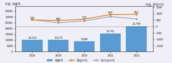 최근 실적을 살펴보면 2022년 매출액이 최근 5년 중 가장 높은 실적을 기록했음을 알 수 있다. 이전 최고 실적이었던 2021년 보다도 38.6%(6063억 5천만원) 늘어난 것으로 나타났다.