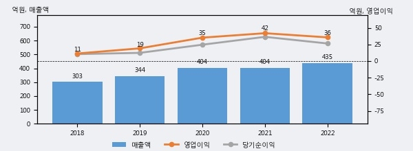 이글벳은 2022년 매출액 435억원과 영업이익 36억원을 기록했다. 전년대비 매출은 7.7% 상승했고, 영업이익은 -15.0% 하락했다. 이 회사의 매출액 증감률과 영업이익 증감률은 각각 코스닥 하위 42%, 하위 40%에 해당된다.