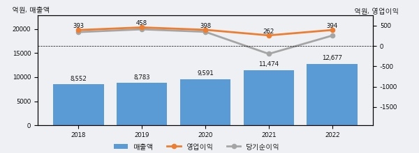 최근 3년간의 실적을 살펴보면 안정적 성장세를 보이고 있다. 최근 3년간 매출로 볼 때 매년 꾸준히 증가하고 있다. 다만 최근에 그 증가폭이 다소 감소하고 있다.