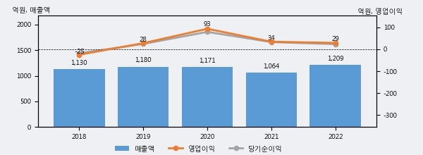 최근 실적을 살펴보면 2022년 매출액이 최근 5년 중 가장 높은 실적을 기록했음을 알 수 있다. 이전 최고 실적이었던 2019년 보다도 2.5%(29억 2천만원) 늘어난 것으로 나타났다.