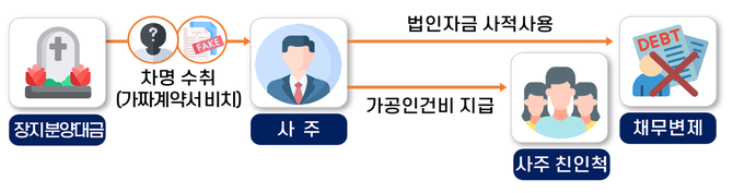 또한, 장지 분양사업을 하면서 지인 등 차명계좌로 대금을 받아 챙겨 은닉하고, 가짜계약서를 꾸며 적극적으로 수입을 은닉했다.