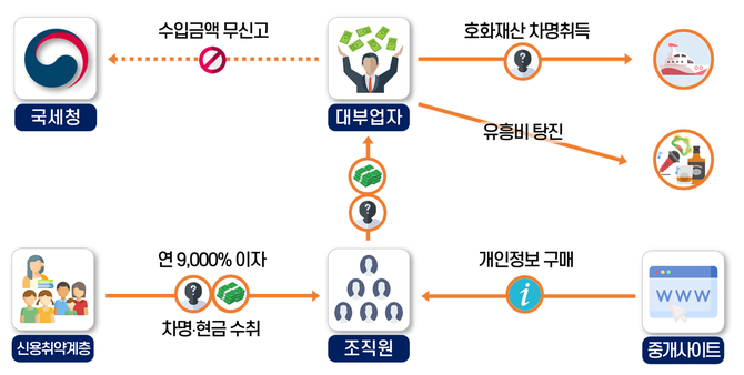이들 조직은 대출 중개 웹사이트에서 제도권 금융기관으로부터 대출 거절된 신용 취약계층 정보를 사들여 취약계층에 접근했다.