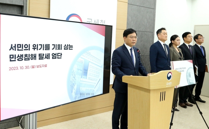 정재수 국세청 조사국장은 30일 국세청 세종본부청사에서 브리핑을 열고 “지속적인 민생침해 탈세 대응에도 불구하고, 일부 사업자의 경우 여전히 서민의 피해는 아랑곳하지 않고, 자기 배 불리기에만 치중하고 있다”며 “사회·경제 동향에 대한 면밀한 모니터링과 현장정보 분석 등을 통해 민생침해 탈세 혐의자들을 추가로 포착하여 세무조사에 착수했다”고 말했다.