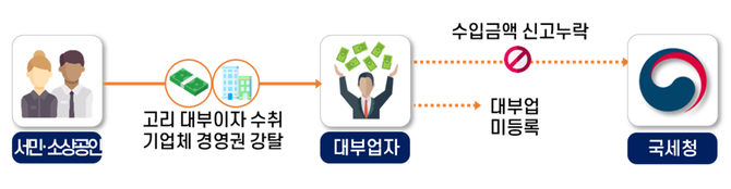 대부업자 C는 명망 있는 지역유지 행세를 하면서 고리 사채업으로 받은 이자수입은 신고누락하고, 자금난을 겪는 기업을 상대로 법정이자율 이상의 초고금리로 돈을 뜯었다.