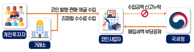 B는 거래소로부터 받아 챙긴 투자자 알선수수료(리퍼럴 수수료)를 신고누락하거나, 가격이 높은 상장 초기에 매각하고 얻은 엄청난 발행·판매 수입은 신고누락하고, 코인 공급 관련 매입세액은 부당 공제 받았다.